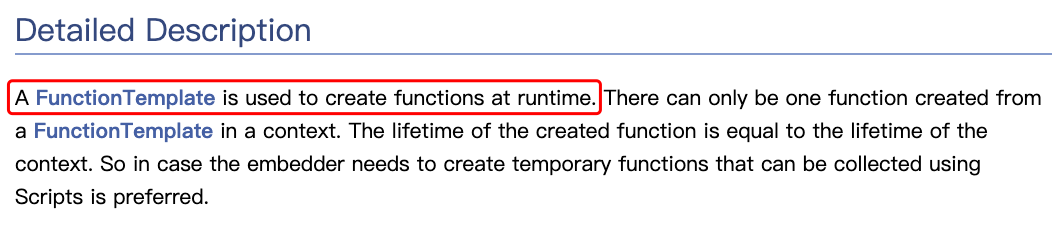 - Js 中的函数都是 FunctionTemplate 创建出来的,返回值的是 FunctionTemplate 实例。