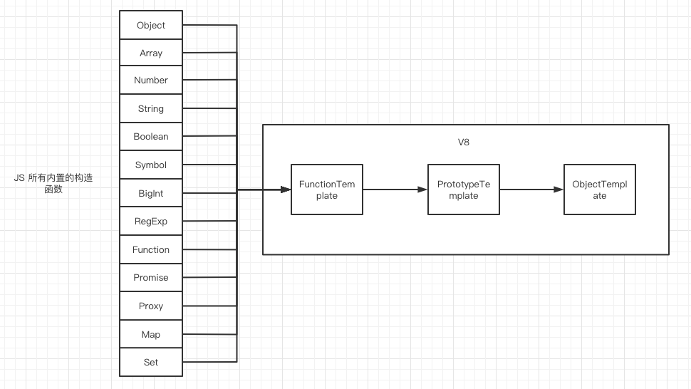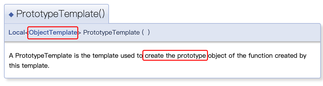 - Js 中函数的原型(prototype)都是通过 PrototypeTemplate 创建出来的,返回值是 ObjectTemplate 实例。